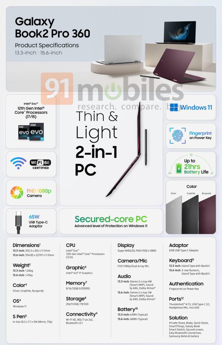 Magdalena Posted February 28, 2022 Posted February 28, 2022 კომპანია Samsung ემზადება გამოფენა MWC 2022-ზე Galaxy Book2 Pro სერიის ლეპტოპების წარდგენისთვის, რომლებიც დამყარებულია Intel-ის ცენტრალურ და გრაფიკულ პროცესორებზე. ულტრათხელ და მსუბუქ, 13.3 და 15.6-დუიმიან ლეპტოპებს ექნება 21 საათამდე გაზრდილი ავტონომიური მუშაობის რესურსი. ინფორმაცია მობილური კომპიუტერების შესახებ ანონსის წინ გამოაქვეყნა რესურს 91 Mobiles-მა. ფოტოს წყარო: 91mobiles.com Samsung-ის ახალი ლეპტოპები დამზადებულია უახლეს პლატფორმა Intel EVO-ზე, რომელშიც წარმოდგენილია Alder Lake პროცესორები და დისკრეტული გრაფიკა Iris Xe. უფროს, 15.6-დუიმიან მოდელსაც დისკრეტული გრაფიკული ადაპტერი Arc Alchemist აქვს. ეს პრივილეგია გარკვეულ მსხვერპლს მოითხოვს, თუმცა უმნიშვნელოს: ცალკე ვიდეო დაფას გააჩნია გაგრილების დამატებითი სისტემა, ამიტომ ლეპტოპის წონა 1.11-დან 1.17 კგ-მდე იზრდება. Samsung Galaxy Book2 Pro სერიის ლეპტოპებს აქვს 5G და Wi-Fi 6E უახლესი სტანდარტების მხარდაჭერა. კვების მიწოდება ხდება 65-ვატიანი USB Type-C ინტერფეისის მეშვეობით, რაც იმას ნიშნავს, რომ ლეპტოპს არ სჭირდება დიდი ზომის ადაპტერი. Book2 Pro-სთან ერთად კორეულმა კომპანიამ უნდა წარადგინოს მოდელი Galaxy Book Pro 360 - ტრანსფორმერი ლეპტოპი მბრუნავი სენსორული ეკრანით. მოწყობილობების დეტალური მახასიათებლები ანონსის შემდეგ გახდება ცნობილი. https://tinyurl.com/6sxctthy Quote