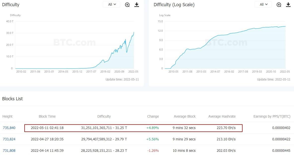 Magdalena Posted May 13, 2022 Posted May 13, 2022 11 მაისს მორიგი გადაანგარიშების შედეგად პირველი კრიპტოვალუტის მაინინგის სირთულე გაიზარდა 4.89%-ით და მიაღწია რეკორდულ მაქსიმალურ 31.25 T-ს. წყარო: BTC.com. 2022 წლის დასაწყისიდან ინდიკატორი უარყოფითად მხოლოდ სამჯერ იქნა კორექტირებული. მაქსიმალურმა კლებამ შეადგინა 1.49%. წინა გადათვლის შემდეგ საშუალო ჰეშრეითმა მიაღწია 223.7 EH/s-ს. Glassnode-ის მიხედვით Bitcoin-ის ქსელის გამოთვლითი სიმძლავრის შვიდდღიანი მოძრავი საშუალო მაჩვენებელი არის 222.2 EH/s. მაქსიმალური 227.2 EH/s დაფიქსირდა 5 მაისს. 2022 წელს ჰეშრეითი გაიზარდა დაახლოებით 32%-ით. წყარო: Glassnode. ადრე Arcane Research-ის ანალიტიკოსებმა აღნიშნეს მაინინგის მომგებიანობაზე ზეწოლის არსებობა Bitcoin-ის ფასის შემცირებისა და ჰეშრეითის ზრდის გამო. მათი კვლევის დროს პირველი კრიპტოვალუტა იყიდებოდა დაახლოებით 40 000 აშშ დოლარად. 10 მაისს ციფრული ოქროს ფასი 30 000 აშშ დოლარს ქვევით ჩამოვიდა. BTC/USD-ის საათობრივი გრაფიკი ბირჟა Coinbase-ზე. წყარო: TradingView. აპრილში მაინერების მთლიანმა შემოსავალმა შეადგინა 1.15 მლრდ აშშ დოლარი - 4%-ით ნაკლები წინა თვესთან შედარებით. https://tinyurl.com/45fsnz79 Quote