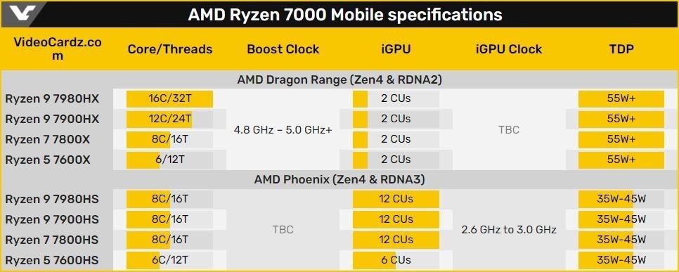Magdalena Posted June 29, 2022 Posted June 29, 2022 AMD ამზადებს პროცესორ Raphael-ის უმცროს ვარიანტს ლეპტოპებისთვის. ის გახდება 16 ბირთვიანი Intel Alder Lake-HX დესკტოპ პროცესორების კონკურენტი, რომლებიც გადაკეთებულია მობილური BGA სოკეტზე. ასეთ მოდელებში აქცენტი კეთდება ცენტრალური პროცესორის მუშაობაზე გრაფიკული ბირთვების რაოდენობის საზიანოდ. AMD Dragon Range სერია განკუთვნილია გეიმინგ ლეპტოპებისთვის, რომლებიც საჭიროებენ დისკრეტულ ვიდეო დაფას. ორი გამომთვლელი RDNA2 ბლოკი არ იძლევა თანამედროვე თამაშებისთვის საკმარის სიჩქარეს, რაც უნდა დაკომპენსირდეს ვიდეო დაფის მეშვეობით. მოსალოდნელია პროცესორების ოთხი მოდელის გამოსვლა. ფლაგმანური Ryzen 9 7980HX იქნება 16-ბირთვიანი, რაც რეკორდი იქნება AMD-ის მობილური პროცესორებისთვის. 12-ბირთვიანი 7900HX იქნება Ryzen 9 სერიის მორიგი წარმომადგენელი. 8-ბირთვიანი და 6-ბირთვიანი 7800HX და 7600HX საშუალო სეგმენტს მიეკუთვნებიან. ყველა მათგანში წარმოდგენილი იქნება ორი გამომთვლელი RDNA2 ბლოკი. აჩქარებისას ტაქტის სიხშირეები შეადგენს 4.805 გჰც-ს და შესაძლოა, მეტს. AMD Phoenix განსხვავდება Dragon Range პროცესორებისგან. უცვლელი რჩება არქიტექტურა Zen4 x86, თუმცა წარმოდგენილი იქნება ბირთვების განახევრებული რაოდენობა უფრო მძლავრ Dragon-თან შედარებით. Phoenix-ის შემთხვევაში ფსონი იდება გაცილებით დაბალ ენერგომოხმარებასა და უფრო მძლავრ გრაფიკაზე. Phoenix ჩიპების TDP-ის დიაპაზონია 35-45 ვატი და ისინი განკუთვნილია თხელი და მსუბუქი გეიმინგ ლეპტოპებისთვის. მათში წარმოდგენილი იქნება ინტეგრირებული გრაფიკული პროცესორი Dragon Range-თან შედარებით განახლებული RDNA3 არქიტექტურით. გრაფიკული პროცესორის ბირთვების რაოდენობა ექვსჯერაა გაზრდილი Dragon-თან შედარებით, ე.ი. მათში მოცემულია 12 (6 WorkGroup პროცესორი), რაც ჯამში 1536 ნაკადურ პროცესორს იძლევა. ასევე ცნობილია, რომ iGPU-ის ტაქტის სიხშირე შესაძლოა იყოს 2.6-3 გჰც, რაც უზრუნველყოფს თეორიულ მაქსიმალურ 9.2 ტერაფლოპს წარმადობას. ადრე ითქვა, რომ Phoenix-ის გრაფიკა პოზიციონირებს Nvidia RTX 3060 Max-Q-ს დონეზე. შედეგად პროცესორები უფრო შესაფერისი გახდება დისკრეტული ვიდეო დაფის არმქონე ლეპტოპებში გეიმინგისთვის. ამ სერიაშიც შევა ოთხი მოდელი: Ryzen 9 7980HS, 7900HS, Ryzen 7 7800HS და Ryzen 5 7600HS. HS მოდელებს ექნება იმდენივე ბირთვი, რამდენიც Ryzen 6000 Rembrandt-ს, თუმცა მათში წარმოდგენილი იქნება უახლესი არქიტექტურა და უკეთესი გრაფიკა. გამოქვეყნდა ამ ჩიპის სავარაუდო დიზაინი. ეს APU იქნება AMD-ის პირველი ჩიპლეტი ლეპტოპებისთვის, რომელშიც მოცემული იქნება Zen4 მოდულები, RDNA3 და, სავარაუდოდ, Infinity Cache მეხსიერება, წერს Videocardz. https://tinyurl.com/ya85efnu Quote