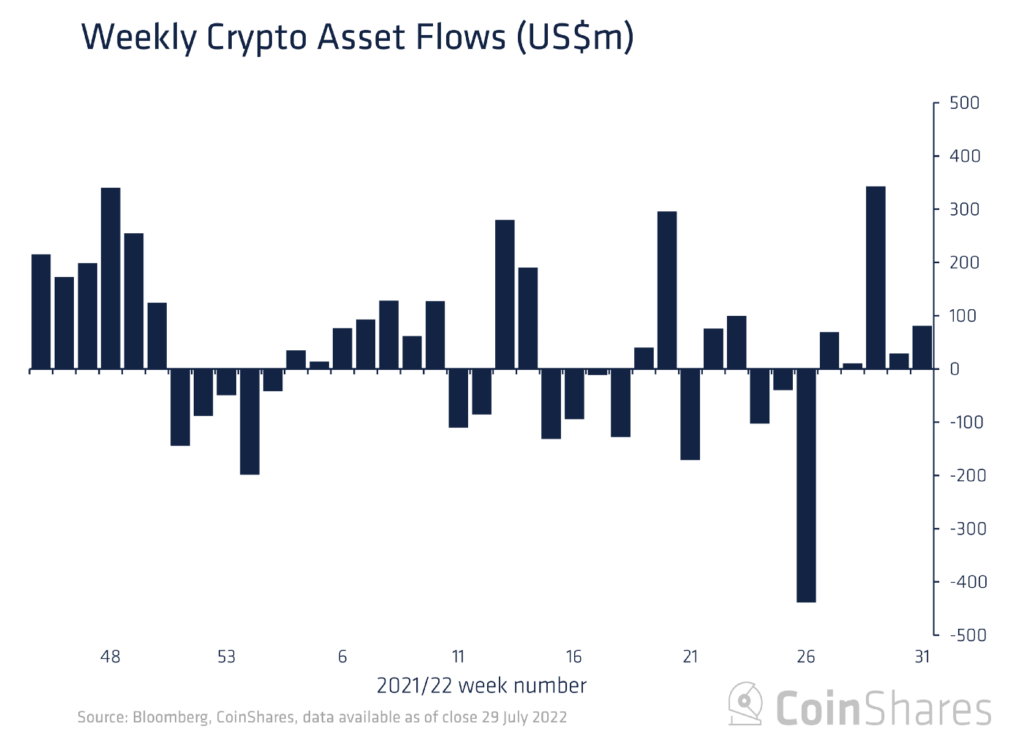 Magdalena Posted August 4, 2022 Posted August 4, 2022 ივლისის შედეგების შეჯამების მიხედვით კრიპტოსაინვესტიციო პროდუქტებში შემოსულმა თანხამ შეადგინა 474 მლნ აშშ დოლარი (მაქსიმუმი წლის დასაწყისიდან), ხოლო 23 ივლისიდან 29 ივლისის ჩათვლით კვირაში - 81 მლნ აშშ დოლარი. ასეთ მონაცემებს გვაწვდიან CoinShares-ის ანალიტიკოსები. წყარო: CoinShares. ფულის შემოდინება ზედიზედ ხუთი კვირა გაგრძელდა. ივნისში ჯამურმა გადინებამ 481 მლნ აშშ დოლარი შეადგინა. ტრადიციულ Bitcoin-ფონდებში შეინიშნებოდა 84.8 მლნ აშშ დოლარის ოდენობით მომხმარებლების ფულადი რესურსების შემოდინება. სტრუქტურებიდან, რომლებიც მომხმარებლებს საშუალებას აძლევს გახსნან მოკლევადიანი პოზიციები პირველ კრიპტოვალუტაში, 2.6 მლნ აშშ დოლარის გადინება პირველად დაფიქსირდა ხუთი კვირის მანძილზე. წყარო: CoinShares. ზედიზედ მეორე კვირაა ინვესტორების ინტერესი ბევრ აქტივზე დამყარებული პროდუქტების მიმართ შემცირდა. ბოლო შვიდი დღის განმავლობაში მათ ამ აქტივებიდან 3.7 მლნ აშშ დოლარი გაიტანეს. Ethereum-ისა და Solana-ს ფონდებში თანხის შემოდინება შემცირდა - 8.1 მლნ აშშ დოლარიდან 1.1 მილიონამდე და 1.8-დან 1.5 მლნ აშშ დოლარამდე, შესაბამისად. ექსპერტებმა აღნიშნეს დაბალი სავაჭრო აქტივობის შენარჩუნება. გასული საანგარიშო კვირის ბოლოს კრიპტოპროდუქტებთან განხორციელებული გარიგებების მოცულობამ 1.3 მლრდ აშშ დოლარი შეადგინა, რაც წლის დასაწყისიდან საშუალო მაჩვენებლის (2.4 მლრდ აშშ დოლარი) თითქმის ნახევარია. შეგახსენებთ, რომ Grayscale-ის ანალიტიკოსებმა დაუშვეს კრიპტოზამთრის დასრულება 2023 წლის მარტის ბოლოს. ადრე Goldman Sachs-ის ყოფილმა ტოპ მენეჯერმა და მაკრო ინვესტორმა რაულ პალმა ივარაუდა Bitcoin-ის მდგომარეობის შეცვლა გლობალური ლიკვიდობის ზრდის გამო. https://tinyurl.com/8xc7np8j Quote