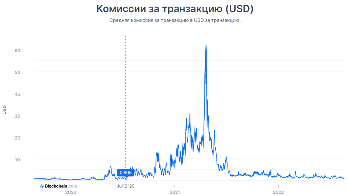 22 აგვისტოს მდგომარეობით Bitcoin-ის ქსელში ტრანზაქციის საშუალო საკომისიოს ღირებულება 0.825 აშშ დოლარი იყო. ინდექსი დოლარზე დაბლა პირველად 2020 წლის ივლისის შემდეგ დაეცა.