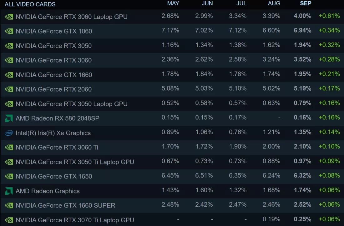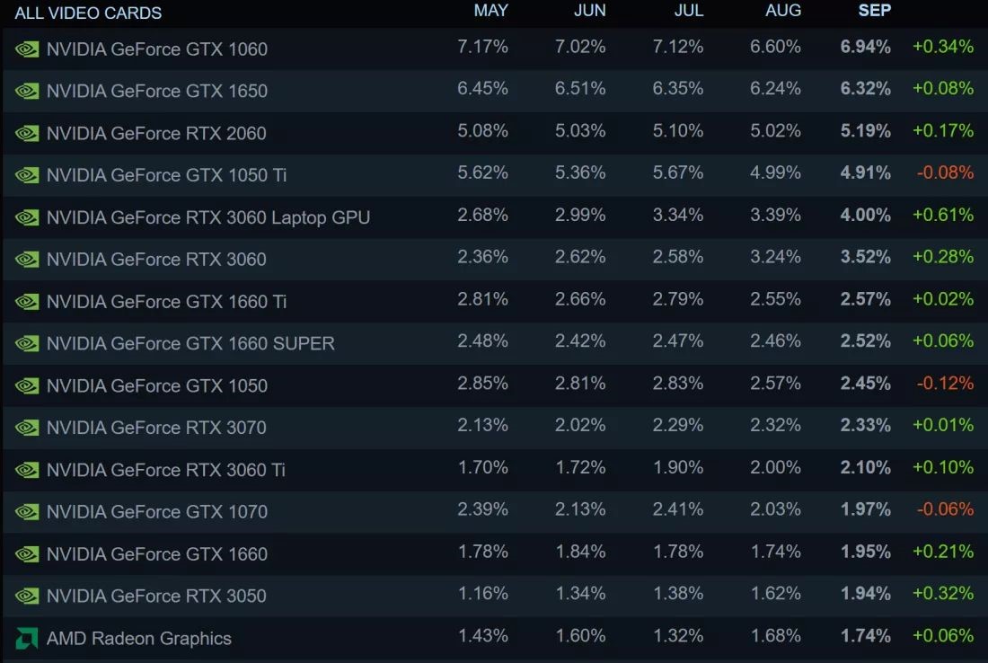 Magdalena Posted October 6, 2022 Posted October 6, 2022 გეიმინგ პლატფორმა Steam-ის უახლესი სტატისტიკა აჩვენებს, რომ მომხმარებლები ამჟამად უპირატესობას ანიჭებენ საშუალო და საბაზისო დონის ვიდეო დაფებს, მათ შორის წინა თაობის მოწყობილობებს. GTX 1060-მა პირველი ადგილი შეინარჩუნა თითქმის ხუთი წლის განმავლობაში, თუმცა სექტემბერში იგი მეორე ადგილას აღმოჩნდა. Pascal არქიტექტურაზე დამყარებული ბარათების მფლობელთა რიცხვი 0.34%-ით გაიზარდა. მასზე უკეთესი მაჩვენებელი დააფიქსირა მხოლოდ ლეპტოპებისთვის განკუთვნილმა RTX 3060 ბარათმა (+0,61%). თვის განმავლობაში მომხმარებლების რიცხვის ზრდის მხრივ ტოპ-10-ში შევიდა ძველი მოდელები GTX 1660 და RTX 2060, თანამედროვე საშუალო და დაბალბიუჯეტური RTX 3060 და RTX 3050 Ti. ზედა დონეზე (არა-ლეპტოპებს შორის) RTX 3070 Ti მოდელის მაჩვენებელი გაიზარდა 0.02%-ით. არ გაზრდილა RTX 3080 Ti-ს, Radeon RX 6900 XT-ისა და Radeon RX 6800 XT-ს მაჩვენებლები, ხოლო RTX 3080-სა და RTX 3090-ს მოაკლდა 0.01% ცოტა ხნის წინ პრემიალურ მოდელებზე ფასების შემცირების მიუხედავად. ძირითადად, ვიდეო დაფების გრაფიკაში მნიშვნელოვანი ცვლილებები არ არის. RTX 3060 და ლეპტოპებისთვის განკუთვნილი 3060 მე-5 და მე-6 ადგილებზეა, შესაბამისად. სექტემბერი იყო ზედიზედ მეორე თვე, როდესაც AMD-მ დაკარგა პროცესორების წილი Intel-ის სასარგებლოდ. AMD-ს მაჩვენებელი შემცირდა 0.82%-ით და ახლა მისი პროცესორების წილი 31.24%-ია, ხოლო Intel-ის - თითქმის 70%. Raptor Lake-სა და Zen 4-ის არქიტექტურაზე დამყარებული ახალი პროცესორების გაჩენამ შესაძლოა მალე გარკვეულწილად შეცვალოს ბალანსი. Windows 11 დაყენებულია კომპიუტერების რაოდენობის თითქმის მეოთხედზე. მხოლოდ მან დააფიქსირა ზრდა სექტემბერში ოპერაციულ სისტემებს შორის. ყველაზე პოპულარულია ვიდეო ბარათები 8 გბ მეხსიერებით, 1080p დარჩა ყველაზე პოპულარულ გაფართოებად (66.38%), ხოლო 1440p გაიზარდა 0.33%-ით 11.25%-მდე. ვირტუალური რეალობის ჰედსეტ Oculus Quest 2 VR-ს მოაკლდა მომხმარებლების ნაწილი. მისი წილი შემცირდა 7.86%-ით 41.39%-მდე. ეს მაჩვენებელი გაცილებით მეტია HMD Valve Index-თან შედარებით, რომლის წილია 17.21%. https://tinyurl.com/946hjrpu Quote