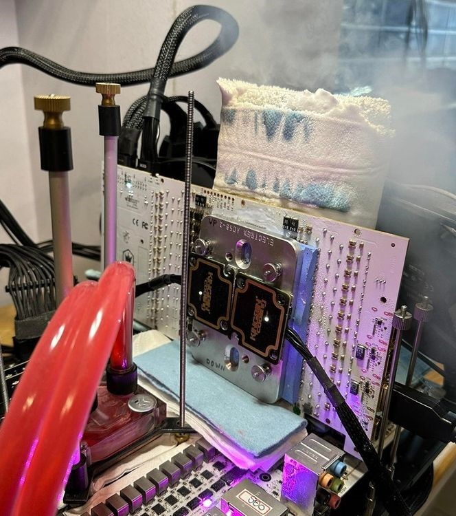 Magdalena Posted November 7, 2022 Posted November 7, 2022 კომპანია GALAX-ის (KFA2) Hall of Fame სერიის ვიდეო ბარათი GeForce RTX 4090 მოხვდა ენთუზიასტების ხელში, რის შემდეგ რამდენიმე მსოფლიო რეკორდი განახლდა. თხევადი აზოტის ავზი მოთავსდა GPU-ზე და ძაბვა გაიზარდა 1.09 ვატამდე. მწარმოებლის თქმით ამ ვიდეო ბარათის გრაფიკული პროცესორი, ჰაერით გაგრილების დროსაც კი, შეძლებს მიაღწიოს 3.1 გჰც-ზე მაღალ სიხშირეებს. ფოტოს წყარო: HWBot, OGS ზემოთხსენებულ შემთხვევაში გრაფიკული პროცესორის სიხშირე 3.7 გჰც-მდე გაიზარდა, მეხსიერება მუშაობდა 21008 მჰც-ზე, GPUPI v3.3 32B ტესტში განახლდა რეკორდი ცალკეულ ვიდეო ბარათებს შორის, შედეგმა შეადგინა 49.049 წამი. ტესტ 3DMark Port Royal-ში გრაფიკული პროცესორის სიხშირე განისაზღვრა 3.57 გჰც-ზე და ეს საკმარისი აღმოჩნდა იმისთვის, რომ ვიდეო ბარათს რეიტინგში პირველი ადგილი დაეკავებინა 31.096 ქულით. https://tinyurl.com/3e77zk5s 2 Quote