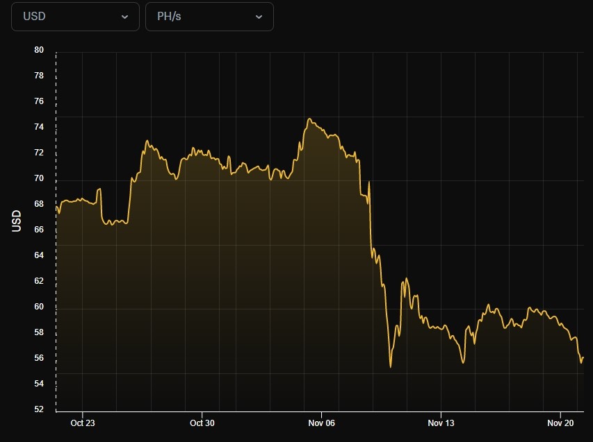 Magdalena Posted November 23, 2022 Posted November 23, 2022 მორიგი გადაანგარიშების შედეგად პირველი კრიპტოვალუტის მაინინგის სირთულე 0.51%-ით გაიზარდა. ინდიკატორმა წინა უმნიშვნელო კლება დააკომპენსირა და მიაღწია ახალ მაქსიმუმს - 36.95 Т. წყარო: BTC.com. საშუალო ჰეშრეითი მუდმივად აღემატებოდა 260 EH/s-ს დაახლოებით ექვსი კვირის განმავლობაში. Glassnode-ის მიხედვით ქსელის გამოთვლითი სიმძლავრის რეკორდული მაჩვენებელი (7 დღის მოძრავი საშუალო) იყო 272.4 EH/s 1 ნოემბერს. 12 ნოემბერს მაჩვენებელი მაქსიმუმს მიუახლოვდა და 272 EH/s დონეს გადააჭარბა. წყარო: Glassnode. მაინინგ პულების მხრივ Foundry USA (26,73%) თავდაჯერებულად იკავებს ლიდერობას Bitcoin-ის ჰეშრეითში წილის მხრივ. მეორე და მესამე პოზიციებს იკავებენ AntPool (17.51%) და Binance Pool (14.98%). წყარო: BTC.com. ივნისში Arcane Research-ის ანალიტიკოსებმა აღნიშნეს, რომ მაინერების ფულადი ნაკადი 80%-ით შემცირდა მისი 2021 წლის ნოემბრის მაქსიმუმთან შედარებით ორი წლის წინანდელ დონემდე. შემოსავლებზე უარყოფითად იმოქმედა ფასების სტაგნაციამ, ელექტროენერგიის ტარიფების მატებამ და სირთულის მუდმივმა ზრდამ. იმავე თვეში ინდუსტრიის საჯარო კომპანიებმა გაყიდეს მეტი კრიპტოვალუტა, ვიდრე მოიპოვეს. ტენდენცია ივლისში გაგრძელდა და აგვისტოში შეიცვალა. ოქტომბერში Arcane Research-ის ექსპერტებმა შეაფასეს მაინერებისთვის „მტკივნეული ზღვარი“ 18.300 დოლარად BTC-ზე. წერის დროს ციფრული ოქრო 16.090 დოლარად იყიდება (CoinGecko). Glassnode-მა ყურადღება გაამახვილა, რომ Bitcoin-ის მაინერების მთლიანი ბალანსი განახლებულია 10 თვის მინიმუმზე. Hashprice (მაინერების დღიური შემოსავალი დახარჯული გამოთვლითი სიმძლავრის მიხედვით) იმყოფება 56$ PH/s დონეზე. წლის დასაწყისში ეს მაჩვენებელი 247 აშშ დოლარი იყო. წყარო: Hashrate Index. შეგახსენებთ, რომ სექტემბერში, მაინინგის ინფრასტრუქტურული გადაწყვეტილებების მიმწოდებელმა Compute North-მა განაცხადა გაკოტრების შესახებ. ოქტომბერში Nasdaq-ის სიაში შემავალმა Core Scientific-მა განაცხადა გადახდისუუნარობის საფრთხის შესახებ. დაფინანსების ნაკლებობის გამო მაინინგის ოპერაციების შემცირების ან შეწყვეტის რისკების შესახებ იტყობინება Argo Blockchain. https://tinyurl.com/bbtz8fau Quote