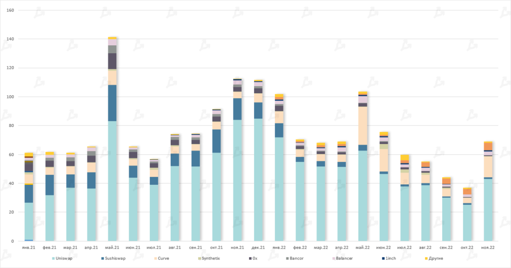 Magdalena Posted December 8, 2022 Posted December 8, 2022 FTX-ის კოლაფსის მიუხედავად ნოემბერში წამყვან სპოტ-პლატფორმებზე ვაჭრობის მოცულობა 22%-ით, 689 მლრდ აშშ დოლარამდე გაიზარდა. ამის შესახებ ნათქვამია ForkLog-ის ყოველთვიურ ანალიტიკურ ანგარიშში. ხსენებული ჯამური თანხიდან 495 მლრდ აშშ დოლარი (70%) მოდიოდა Binance-ზე, რომელმაც ყველაზე დიდი მოგება მიიღო FTX International-ის კრახის შედეგად. ასევე გაუმჯობესდა Coinbase-ისა და Kraken-ის პოზიციები (61 და 23 მლრდ აშშ დოლარი, შესაბამისად), რადგანაც სემ ბენკმან-ფრიდის ბირჟის ამერიკული ფილიალიც დაიხურა, ადგილობრივი მომხმარებლები კი ვერ მუშაობენ არარეგულირებად პლატფორმებთან. ვაჭრობის მოცულობა წამყვან სპოტ-ბირჟებზე, მლრდ აშშ დოლარში. წყარო: The Block. ნოემბრის შეჯამებით ცენტრალიზებული ბირჟების ანგარიშებზე (CEX) აქტივების მთლიანი მოცულობა 15%-ით შემცირდა - თვის განმავლობაში გადინებამ 3.5 მლნ ETH-ს გადააჭარბა. DeFi აპლიკაციების სმარტ-კონტრაქტებში დაბლოკილი ETH-ის წილმა მიაღწია 26.71%-ს (ოქტომბერში შეადგენდა 27.97%-ს). Ethereum-ის ბალანსები ცენტრალიზებულ ბირჟებზე და სმარტ-კონტრაქტებში ჩართული ETH-ის მიწოდების წილი. წყარო: Glassnode. ცენტრალიზებული სერვისებისადმი ნდობის კრიზისის ფონზე მომხმარებლებმა კვლავ გამოიჩინეს ინტერესი დეცენტრალიზებული ბირჟების მიმართ. ForkLog-ის მიერ გამოკვლეულმა არაკასტოდიალურმა პლატფორმებმა დააფიქსირეს ვაჭრობის ყველაზე მაღალი მოცულობა 2022 წლის ივნისის შემდეგ - თითქმის 69 მლრდ აშშ დოლარი. Uniswap-ის მაჩვენებელი გაიზარდა 58%-ით და მიაღწია 43 მლრდ აშშ დოლარს. მნიშვნელოვანი ზრდა დააფიქსირა Curve პროტოკოლმა - 3.7 მილიარდიდან 14.4 მლრდ აშშ დოლარამდე (+280%). DODO-ს მოცულობა 3.7 მილიარდიდან 5.2 მლრდ აშშ დოლარამდე გაიზარდა (+40%). ვაჭრობის მოცულობა დეცენტრალიზებულ Ethereum-ბირჟებზე, მლრდ აშშ დოლარში. წყარო: Dune Analytics. TVL Ethereum-ის ქსელის L2 პროტოკოლებში, ETH-სა და აშშ დოლარში. წყარო: L2Beat. შეგახსენებთ, ნოემბერში JPMorgan-ის ანალიტიკოსებმა დაასკვნეს, რომ CEX-ის უპირატესობა დეცენტრალიზებულ ანალოგებთან შედარებით გაგრძელდება FTX-ის კოლაფსის მიუხედავად. https://tinyurl.com/5fmshx6w Quote