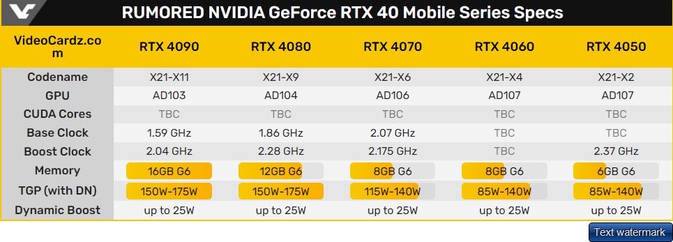 Magdalena Posted December 24, 2022 Posted December 24, 2022 ახალი თაობის ვიდეო ბარათ Titan-ის პარალელურად ინტერნეტში გამოჩნდა ლეპტოპებისთვის განკუთვნილი RTX 40 ბარათების მონაცემები ფლაგმანური RTX 4090-ის ჩათვლით. დასახელდა GPU-ის ტაქტის სიხშირებეი და სიმძლავრის შეზღუდვა. სავარაუდოდ, RTX 4090-ის ენერგომოხმარება 175 ვატს აღწევს RTX 3080 Ti-ს მსგავსად. ეს ვიდეო ბარათი წარდგენილი იქნება ორ ვერსიად TGP-ის მაქსიმალური მაჩვენებლებით - 150 და 175 ვატი. მისი სიხშირე არწევს 2.04 გჰც-ს მაქსიმალურ კონფიგურაციაში, რაც თითქმის 0.5 გჰც-ით აღემატება წინა თაობის ფლაგმანს. RTX 4090: 150+25 ვტ ≈ 175 ვტ RTX 4080: 150+25 ვტ ≈ 175 ვტ RTX 4070: 115+25 ვტ ≈ 140 ვტ RTX 4060: 115+25 ვტ ≈ 140 ვტ RTX 4050: 115+25 ვტ ≈ 140 ვტ RTX 4080 გაცილებით ნელი იქნება. AD104 ჩიპზე დამყარებული მობილური ვიდეო ბარათის მაქსიმალური სიმძლავრეა 175 ვატი (150 ვტ + 25 ვტ Dynamic Boost). ნომინალური და გაზრდილი სიხშირეები შეადგენს 1.86 და 2.28 გჰც-ს, შესაბამისად. RTX 4070-სა და RTX 4060-ს მსგავსი მეხსიერება და TGP აქვთ: 8 გბ GDDR6 მეხსიერება და მაქსიმალური TGP – 140 ვატი (115 + 25 ვტ). RTX 4070-ის სიხშირეა 2.175 გჰც-მდე, RTX 4060-ის სიხშირე უცნობია. RTX 4060-სა და RTX 4050-ს ექნება 85-დან 115 ვატამდე TGP. სიხშირე 2.37 გჰც-ს აღწევს. ყველა ამ ვიდეო ბარათის წარდგენა შედგება გამოფენა CES 2023-ზე, წერს Videocardz. https://tinyurl.com/2mbdcyaz Quote