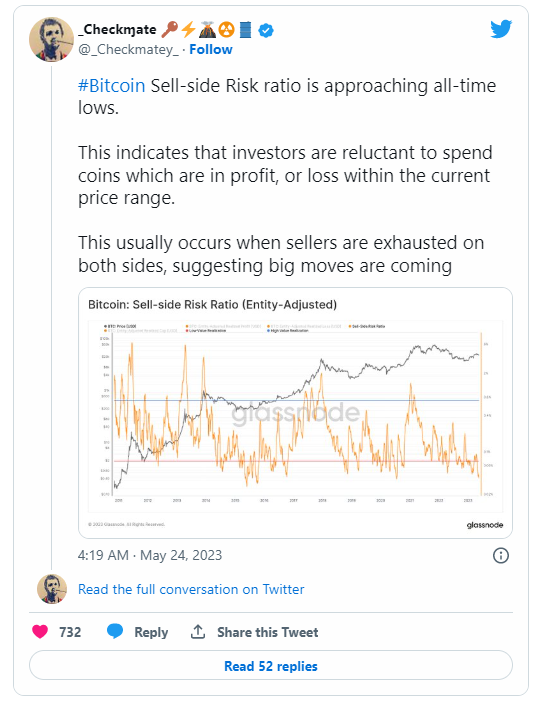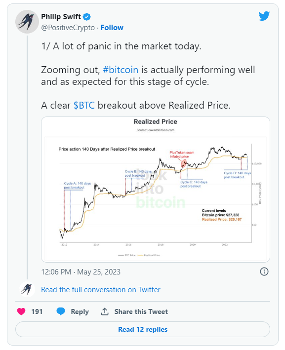 Magdalena Posted May 30, 2023 Posted May 30, 2023 პირველი კრიპტოვალუტის ფასის ათკვირიან მინიმუმამდე კლებამ არ იმოქმედა ტექნიკურ სურათზე, რაც აღმავალი მოძრაობის განვითარებას გვპირდება. ამის შესახებ LookIntoBitcoin-ის დამფუძნებელმა ფილიპ სვიფტმა განაცხადა. ექსპერტმა ყურადღება გაამახვილა რეალიზებული ფასების კვოტების გარღვევაზე ზედა მიმართულებით. მისი გამოთვლებით, წარსულში ასეთი სიგნალის მიღებიდან მომდევნო 140 დღეში აღმავალი ტენდენცია გაგრძელდა. ინდიკატორების გადაკვეთა მოხდა 2023 წლის იანვრის შუა რიცხვებში. „დღეს ბაზარზე დიდი პანიკაა. სინამდვილეში ციკლის ამ ეტაპზე Bitcoin ისე იქცევა, როგორც მოსალოდნელია“, - განაცხადა სვიფტმა. Glassnode-იდან ანალიტიკოს Checkmate-მა მიუთითა გამყიდველების „ამოწურვაზე“. სპეციალისტმა მოიყვანა გაყიდვის მხარის რისკის თანაფარდობის ინდიკატორის მონაცემები, რომელიც თითქმის რეკორდულ დონემდე დაეცა. მიმდინარე თანაფარდობა მიუთითებს ინვესტორების დაბალ მზაობაზე - დახარჯონ მონეტები, რომლებსაც მოგება ან ზარალი მოაქვთ მიმდინარე ფასების დიაპაზონში, აღნიშნა მან. „წინ დიდი მოძრაობაა“ - გამოთქვა გაფრთხილება Checkmate-მა. აქტივების მართვის კომპანია Mott Capital Management-ის დამფუძნებელმა მაიკლ კრამერმა დაუშვა Bitcoin-ის ფასის 20 000 აშშ დოლარამდე ჩამოსვლის რისკი. CNBC-ის მიერ ადრე გამოკითხულმა ექსპერტებმა ციფრული ოქროს მიმართ ხარული განწყობა დააფიქსირეს. მათი პროგნოზების თანახმად მიმდინარე წელს აქტივმა შესაძლოა დააფიქსიროს წინა მაქსიმუმი და მიაღწიოს 100 ათას აშშ დოლარიან დონესაც კი. Standard Chartered-ის ანალიტიკოსების აზრით პირველი კრიპტოვალუტის ფასი 100 ათას აშშ დოლარს 2024 წლის ბოლომდე მიაღწევს. https://tinyurl.com/yhhcasne Quote