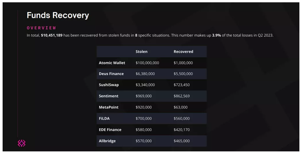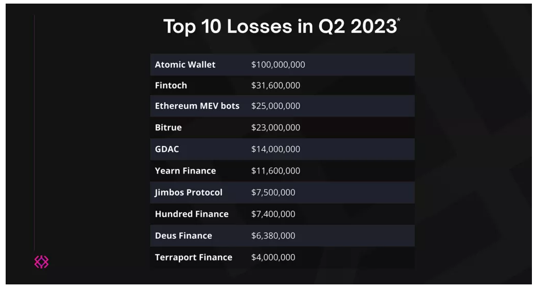 დაახლოებით 265 მლნ აშშ დოლარი დაიკარგა გასული სამი თვის განმავლობაში: 220 მლნ აშშ დოლარი - ჰაკერების გამო, 45 მილიონი - სხვა ინციდენტების გამო. ეს მიუთითებს ზარალის 60.4%-ით შემცირებაზე 2022 წლის მეორე კვარტალთან შედარებით, აღნიშნეს დოკუმენტის ავტორებმა.