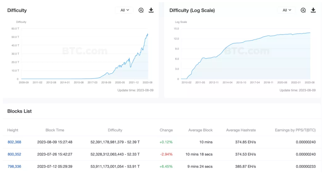 წინა ცვლილების შემდეგ საშუალო ჰეშრეი არის 374.85 EH/s. ბლოკებს შორის დიაპაზონი 10 წუთი იყო გათვალისწინებული ალგორითმით.