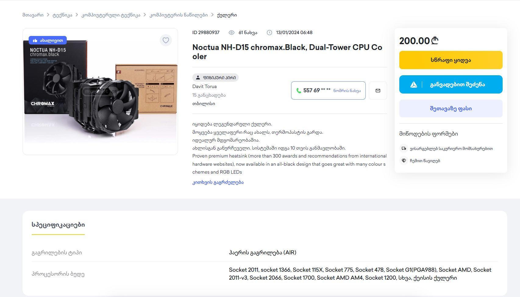 მიშკა Posted January 24, 2024 Author Posted January 24, 2024 კაროჩე წყლის გაგრილება სერიოზულ სხვაობას მომცემს და ღიირს ჩალიჩად და რაც მთავარია მაგხელა ფულად? ახლა ხალასტოიზე 40-45 გრადუსი უჭირავს. ინტელთან შედარებით ბევრია თან ზამთარია. რავი რას მირჩევთ? ისე დავაკვირდი და ხანდახან ხრომს რო გავხსნი უცეფ ადის ხოლმე 50-მდე მერე ჩამოდის ან რომელი ფირმა ვეძებო - მილიონია ეს წყლის გაგრილებებიც და მე აზზე არა ვარ რომელია კაი და ნაგავი Gogla1990 ესეიგი ეს რომ ვიყიდო, დადგება შენი აზრით ჩვეულებრივად? https://www.mymarket.ge/ka/pr/29831710/teqnika/kompiuteruli-teqnika/kompiuteris-nawilebi/quleri/nzxt-kraken-x63-rgb?OfferType=Basic