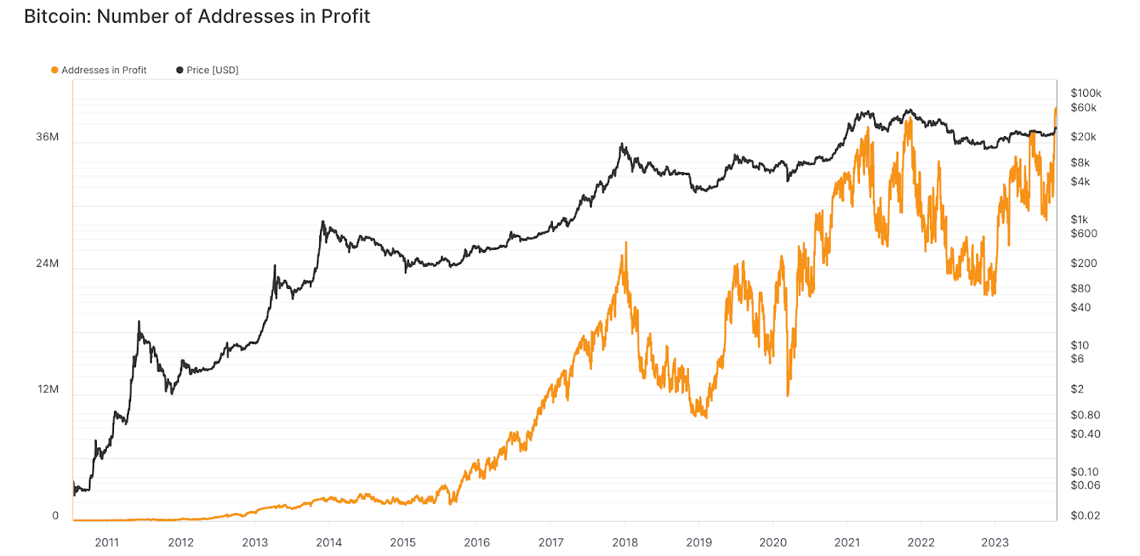 Magdalena Posted November 2, 2023 Posted November 2, 2023 Bitcoin-საფულეებში არსებულმა მოგებამ 39 მლნ აშშ დოლარს გადააჭარბა, Glassnode-ის მონაცემებით ეს ახალი რეკორდული მაჩვენებელია. წყარო: Glassnode. აირველ კრიპტოვალუტაში ნულოვანი ბალანსის მქონე მისამართების დაახლოებით 80% „მოგებაშია“ ფასის 34 ათას აშშ დოლარიანი დონის გადალახვის წყალობით. ინდიკატორის წინა მაქსიმუმი დაფიქსირდა 2021 წლის ნოემბერში. პიკი 38.1 მლნ აშშ დოლარი იყო, როდესაც Bitcoin-ის ფასი რეკორდულ დონეს დაუბრუნდა. მიუხედავად იმისა, რომ კრიპტოვალუტის სპოტ ბაზარზე ამჟამინდელი კოტირებები შეადგენს იმ პერიოდის ღირებულებების დაახლოებით 50%-ს, Bitcoin-ის „არანულოვანი“ მისამართების რაოდენობამ ამ დროისთვის 49 მილიონს გადააჭარბა. პირველი კრიპტოვალუტის ფასის ოქტომბერში აღმასვლამ განაპირობა ის, რომ პირველი კრიპტოვალუტის საფულეების მფლობელთა 20%-ზე ნაკლებს აქვს არარეალიზებული ზარალი. წყარო: Glassnode. Crypto Slate-ის მკვლევარმა ჯეიმს სტრატენმა ყურადღება გაამახვილა Bitcoin-ის მოკლევადიანი მფლობელების მიერ მოგების მიღებაზე. ტენდენციამ არ იმოქმედა გრძელვადიან კრიპტო ინვესტორებზე. „LTH-ს პრაქტიკულად არ შეუცვლია პოზიცია და წელს მეექვსე ადგილი დაიკავა მოგების მხრივ, თუმცა ჯამში - მინიმალური“, - აღნიშნა ექსპერტმა. IntoTheBlock-ის ანალიტიკოსებმა აღნიშნეს Bitcoin-ის მსხვილი მფლობელების პოზიციების ზრდა. ბოლო შვიდი დღის განმავლობაში ამ კატეგორიის ინვესტორებმა თავიანთ პორტფელებს დაამატეს 19.923 BTC, რომლის ღირებულება დაახლოებით 650 მლნ აშშ დოლარია. https://tinyurl.com/3sznnzpx Quote