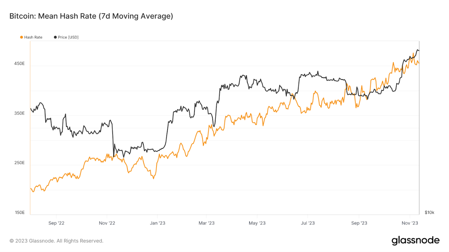 Magdalena Posted November 16, 2023 Posted November 16, 2023 მორიგი გადაანგარიშების შედეგად პირველი კრიპტოვალუტის მაინინგის სირთულე 3.55%-ით გაიზარდა. ინდიკატორი განახლდა მაქსიმალურ 64.68 T ნიშნულზე. წყარო: BTC.com. წინა მაჩვენებლის ცვლილების შემდეგ პერიოდის საშუალო ჰეშრეითი იყო 479 EH/s. ბლოკებს შორის მანძილი 9.5 წუთზე ცოტა მეტია. Glassnode-ის მიხედვით 7-დღიანმა მოძრავმა საშუალო მაჩვენებელმა პიკს - 475.9 EH/s-ს მიაღწია 5 ნოემბერს. ამის შემდეგ დაკორექტირდა და წერის დროს შეადგენს 454.9 EH/s-ს. წყარო: Glassnode. Hashrate Index-ის მონაცემებით ბოლო 24 საათის განმავლობაში ჰეშის ფასი PH-ზე 83.1 აშშ დოლარიდან დღე-ღამეში 80.6 აშშ დოლარამდე დაეცა. წყარო: Hashrate Index. შეგახსენებთ, რომ ნოემბერში CoinGecko-მ შეადგინა მაინერების რეიტინგი Bitcoin-ების მოცულობის მიხედვით. Marathon Digital Holdings ლიდერობს 13.726 BTC-ი მარაგით, მას მოჰყვება Hut 8 Mining. https://tinyurl.com/yctczwmy Quote