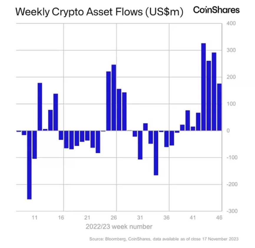 Magdalena Posted November 22, 2023 Posted November 22, 2023 კრიპტოვალუტების საინვესტიციო პროდუქტებში თანხების შემოდინებამ 11 ნოემბრიდან 17 ნოემბრის ჩათვლით შეადგინა 175.6 მლნ აშშ დოლარი, ბოლო რვა კვირის განმავლობაში ინვესტორებმა ჯამში 1.32 მლრდ აშშ დოლარის ინვესტიცია განახორციელეს CoinShares-ის ანგარიშის მიხედვით. ”ტემპი მნიშვნელოვნად დაბალია 2021 და 2020 წლებთან შედარებით, როდესაც მაჩვენებელი შეადგენდა 10.7 მლრდ და 6.6 მლრდ აშშ დოლარს, შესაბამისად,” - გამოთვალეს სპეციალისტებმა. წყარო: CoinShares. Crypto ETP-ის სავაჭრო მოცულობა გაორმაგდა 3 მლრდ აშშ დოლარამდე. Bitcoin-თან დაკავშირებულ პროდუქტებში 154.7 მლნ აშშ დოლარის ინვესტიცია განხორციელდა, წინა პერიოდში კი ეს თანხა 240 მლნ აშშ დოლარი იყო, ბოლო რვა კვირის განმავლობაში შემოდინებამ მიაღწია AUM-ის 3.4%-ს (30.78 მლრდ აშშ დოლარი). სტრუქტურებიდან, რომლებიც პირველ კრიპტოვალუტაზე მოკლევადიანი პოზიციების გახსნის საშუალებას იძლევა, მმართველი კომპანიების მომხმარებლებმა გაიტანეს 8.5 მლნ აშშ დოლარი. ერთი კვირით ადრე იგივე მაჩვენებელი 7 მლნ აშშ დოლარს შეადგენდა. ანალიტიკოსები ტენდენციების გაგრძელებას უკავშირებენ SEC-ის მხრიდან Spot Bitcoin ETF-ის დამტკიცების მოლოდინებს. Ethereum-ის ფონდებმა მოიზიდა 3.3 მლნ აშშ დოლარი. წინა საანგარიშო პერიოდის მაქსიმუმი 49.1 მლნ აშშ დოლარი იყო. კვლავ გამოირჩეოდა Solana-ზე დამყარებული ინსტრუმენტები 13.6 მლნ აშშ დოლარიანი მაჩვენებლით - ერთი კვირით ადრე ეს მაჩვენებელი 12.4 მლნ აშშ დოლარი იყო. წყარო: CoinShares. მანამდე K33Research ანალიტიკოსებმა დააფიქსირეს Bitcoin-ის პროდუქტებში აქტივების რეკორდული რაოდენობა (204.170 BTC). შეგახსენებთ, რომ Matrixport-მა 2023 წელს პირველი კრიპტოვალუტის ფასის 40 000-45 000 აშშ დოლარამდე ზრდა ივარაუდა. https://tinyurl.com/3eab6ana Quote