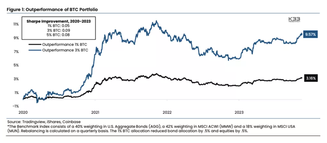 Magdalena Posted November 27, 2023 Posted November 27, 2023 Spot Bitcoin ETF-ების დამტკიცება გაამარტივებს წვდომას ციფრულ აქტივებზე და შეამცირებს 60/40-ზე დაბალანსებული საინვესტიციო პორტფელის რისკს დივერსიფიკაციის გზით - ნათქვამია Research-ის ანგარიშშია. „ჩვენ ველით, რომ საერთო ცვალებადობის სარგებელი და რისკის მიხედვით მორგებული ეფექტურობა გახდება საკვანძო სტრატეგია ბაზარზე გასასვლელად სხვადასხვა ბირჟაზე ვაჭრობის პროდუქტების პროვაიდერებისთვის“, - ნათქვამია დოკუმენტში. ანალიტიკოსების აზრით 2020 წლიდან ციფრულმა ოქრომ დაამტკიცა თავისი ღირებულება, როგორც დივერსიფიკაციის მძლავრმა ინსტრუმენტმა. მათი გათვლებით, ინვესტორს, რომელსაც აქვს 1%-იანი წილი Bitcoin AUM-ზე ტრადიციულ 60/40 პორტფელში, უპირატესობა ექნება თავის 3.16%-იანი წილის მქონე კოლეგასთან შედარებით, რომელსაც არ აქვს ასეთი ცვლილებება. 2023 წელს ციფრული ოქროს დივერსიფიკაციის სარგებელი კიდევ უფრო აშკარა გახდა რისკის შემცველ აქტივებთან კორელაციის შემცირების და "მყარი" ზრდის ფონზე. წყარო: K33Research. ექსპერტები ბაზრის კონსოლიდაციას პროგნოზირებენ 10 იანვრამდე, როდესაც SEC სავარაუდოდ მიიღებს პოზიტიურ გადაწყვეტილებას ბირჟაზე ვაჭრობის ფონდთან დაკავშირებით, რომელიც პირველ კრიპტოვალუტაზე იქნება დამყარებული. ამას მოწმობს ბაზრის „მოკრძალებული“ რეაქცია Binance-ის გარშემო არსებულ ამბებზე, აღნიშნეს მათ. ანალიტიკოსების დაკვირვებით CME-ზე ფიუჩერსების წლიური პრემიები რჩება 18%-ზე, ხოლო ღია პროცენტი (OI) რეკორდულ მაჩვენებელზეა, რაც ძლიერ ხარულ განწყობაზე მიუთითებს. „ბაზრის მიმდინარე სიგნალები იმაზე მიუთითებს, რომ ტრეიდერებს სურთ შეინარჩუნონ თავიანთი პოზიციები წლის ბოლოს. კონტანგოს კოეფიციენტი დეკემბერში ნოემბერთან შედარებით არის უზარმაზარი - 1.69%. ეს აღემატება 2021 წლის ოქტომბერში არსებულ რეკორდულ დონეს“, - განმარტეს მათ. ღია ინტრესი (OI) გაიზარდა 32.011 BTC-ით (1.17 მლრდ აშშ დოლარი) ბოლო 35 დღის განმავლობაში. ოფშორულ კრიპტოდერივატიულ ბირჟებზე განწყობა რჩება თავშეკავებული, რაც ამცირებს ლიკვიდაციის ალბათობას, აღნიშნეს ექსპერტებმა. OI დაეცა 18 თვის მინიმუმამდე და დაფინანსების განაკვეთები დაუბრუნდა ნეიტრალურ დონეს. CoinShares-ის თანახმად ბოლო რვა კვირის განმავლობაში ინვესტორებმა 1.32 მლრდ აშშ დოლარის ინვესტიცია განახორციელეს კრიპტოპროდუქტებში. Bitcoin0ის ფონდებში თანხების შემოდინებამ ამ პერიოდში მიაღწია AUM-ის 3.4%-ს (30.78 მლრდ აშშ დოლარი). Matrixport-ის შეფასებით ანხების შემოდინება აშშ-ში დალისტულ ETF-ებში შეიძლება მერყეობდეს 24 მილიარდიდან 50 მლრდ აშშ დოლარამდე. https://tinyurl.com/yacs6x3v Quote