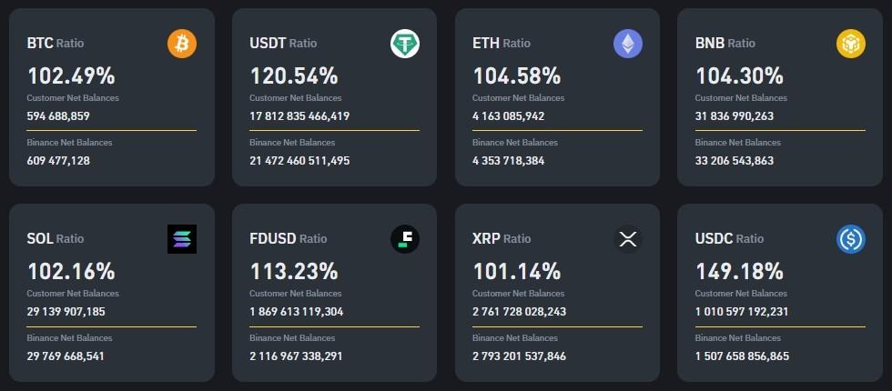 „როცა ჩვენ ვსაუბრობთ რეზერვების დადასტურებაზე, კონკრეტულად ვგულისხმობთ იმ აქტივებს, რომლებსაც ვინახავთ მომხმარებლებისთვის. ეს ნიშნავს შემდეგს - ჩვენ ვაფიქსირებთ მტკიცებულებებს, რომ Binance-ს აქვს თანხები, რომლებიც 1:1-ში ფარავს ჩვენი მომხმარებლების ყველა აქტივს, აგრეთვე არსებობს გარკვეული მარაგიც“ - ნათქვამია კომპანიის განცხადებაში.