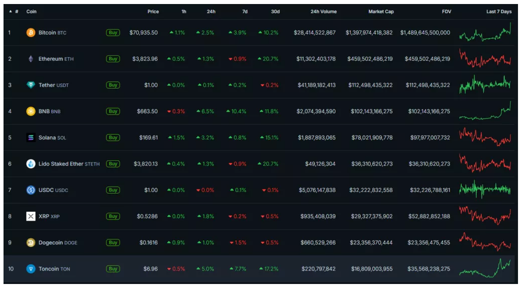 Magdalena Posted June 7, 2024 Posted June 7, 2024 პირველმა კრიპტოვალუტამ ზრდა განაახლა. ციფრული ოქროს კოტირებები 71000 აშშ დოლარს უახლოვდება. აღმავალ მოძრაობას თან ახლდა ვაჭრობის მოცულობის ზრდა. BTC/USDT-ის საათობრივი გრაფიკი ბირჟა Binance-ზე. წყარო: TradingView Bitcoin-ის ფასის 70.990 აშშ დოლარამდე მატებამ დადებითი გავლენა მოახდინა უფრო ფართო ბაზარზე - საბაზრო კაპიტალიზაციის რეიტინგების „ლურჯი ჩიპები“ შევიდა „მწვანე ზონაში“. ტოპ-10 კრიპტოაქტივი ბაზრის კაპიტალიზაციით. წყარო: CoinGecko Rekt Capital-ის ანალიტიკოსი ვარაუდობს, რომ „პარაბოლური ზრდის ფაზაში შესასვლელად“ ციფრულმა ოქრომ უნდა გადალახოს წინააღმდეგობის ზონა 72.000 და 73.000 აშშ დოლარიან დონეებზე. წერის დროს მთლიანი საბაზრო კაპიტალიზაცია 2.76 ტრილნ აშშ დოლარია. Bitcoin-ის დომინირების ინდექსი 50.6%- შეადგენს. ადრე CryptoQuant-ის ექსპერტებმა აღნიშნეს, რომ მფლობელებს არ სურდათ „ნაღდ ფულზე გადასვლა“ 70.000 აშშ დოლარიანი ნიშნულის გატესტვის შემდეგ. https://tinyurl.com/3v7hxf66 Quote