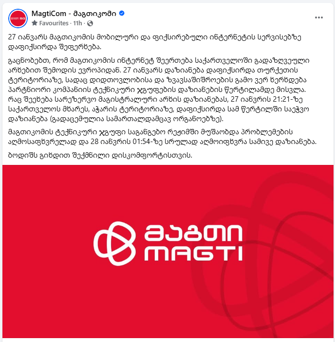 თურქეთში იყო დაზიანება და მაგთი გავიდა გაღმა მთელი ქვეყნის მასშტაბით