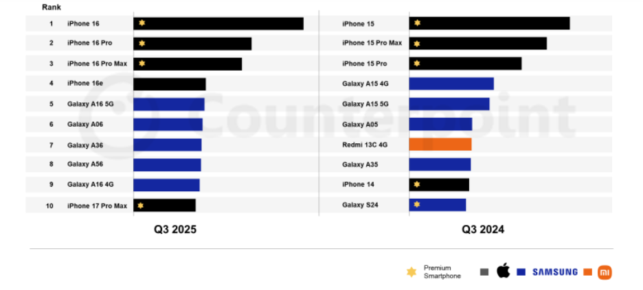 Magdalena Posted December 13, 2025 Author Posted December 13, 2025 iPhone 16 2025 წლის მესამე კვარტალში მსოფლიოში ყველაზე გაყიდვადი სმარტფონი აღმოჩნდა Counterpoint Research-ის მონაცემებით iPhone 16 2025 წლის მესამე კვარტალში მსოფლიოში ყველაზე გაყიდვადი სმარტფონი გახდა. Apple-მა და Samsung-მა ტოპ 10-ში ხუთ-ხუთი ადგილი დაიკავეს, რაც სამთვიან პერიოდში სმარტფონების გლობალური გაყიდვების 20%-ს შეადგენს. აღსანიშნავია, რომ ისტორიაში პირველად 5G მხარდაჭერის მქონე სმარტფონებმა რეიტინგში პირველი ხუთი ადგილი დაიკავეს, რაც ტექნოლოგიის სტანდარტზე გადასვლას და მის უმთავრეს მნიშვნელობას აჩვენებს ყველა რეგიონის მომხმარებლებისთვის. მესამე კვარტალში გაყიდვებში iPhone 16 ლიდერობდა, მთლიანი გაყიდვების 4%-იანი მაჩვენებლით. ეს განპირობებული იყო ინდოეთში სადღესასწაულო აქციების ფონზე გაყიდვების ზრდით, ასევე იაპონიის ბაზარზე გაყიდვების აღდგენით. ამან ასევე ხელი შეუწყო iPhone 16-ის მთელი ხაზის გაყიდვების სეზონური კლების შერბილებას, რაც iPhone 17-ის გამოშვებამ გამოიწვია. თუმცა, ფლაგმანურ iPhone 16 Pro-სა და iPhone 16 Pro Max-ში უფრო მკვეთრი კლება დაფიქსირდა, რადგან ამ მოდელების ძირითად ბაზრებზე, მათ შორის აშშ-ში, დიდ ბრიტანეთსა და ჩინეთში, მომხმარებლებმა ახალი თაობის მოდელები აირჩიეს. iPhone 17 Pro Max-მა სიაში მეათე ადგილი დაიკავა, კვარტლის ბოლოს შეზღუდული ხელმისაწვდომობის მიუხედავად. გარდა ამისა, Apple-ის ახალი ფლაგმანი სექტემბერში ყველაზე გაყიდვადი სმარტფონი გახდა. მოთხოვნის ზრდა განპირობებული იყო კორონავირუსის პანდემიის დროს მომხმარებლების მიერ შეძენილი მოწყობილობების ბუნებრივი განახლების ციკლით. ორივე ფლაგმანს აქვს მნიშვნელოვანი გაუმჯობესებები ფოტო და ვიდეო გადაღების კუთხით, ხოლო ახალი A19 Pro ჩიპი და გაუმჯობესებული გაგრილების სისტემა საშუალებას აძლევს მათ უზრუნველყონ უმაღლესი დონის წარმადობა, რომელიც ოპტიმიზებულია დიდი რესურსების საჭიროების მქონე შემოქმედებით ამოცანებზე. ფოტოს წყარო: counterpointresearch.com Samsung-ის სმარტფონებმა რეიტინგში ხუთი ადგილი დაიკავეს. ყველა ეს მოდელი Galaxy A სერიის მოდელი იყო, რომელთა მოცულობითი წილი ტოპ 10-ში წლიდან წლამდე გაიზარდა. A სერიის სმარტფონებმა გაყიდვების მსგავსი წილი აჩვენეს, რაც ეფექტურად მოიცავდა მომხმარებელთა სხვადასხვა სეგმენტს. მაგალითად, Galaxy A16 5G გახდა კვარტლის ყველაზე გაყიდვადი Android სმარტფონი, რომელმაც წინა თაობის 4G მოდელს გაუსწრო. საშუალო კლასის Galaxy A36-მა და Galaxy A56-მა ასევე აჩვენეს უფრო მაღალი გაყიდვები წინამორბედებთან შედარებით, რაც განპირობებული იყო ხელოვნური ინტელექტით აღჭურვილი ფუნქციების დანერგვით, რამაც სმარტფონები მყიდველები