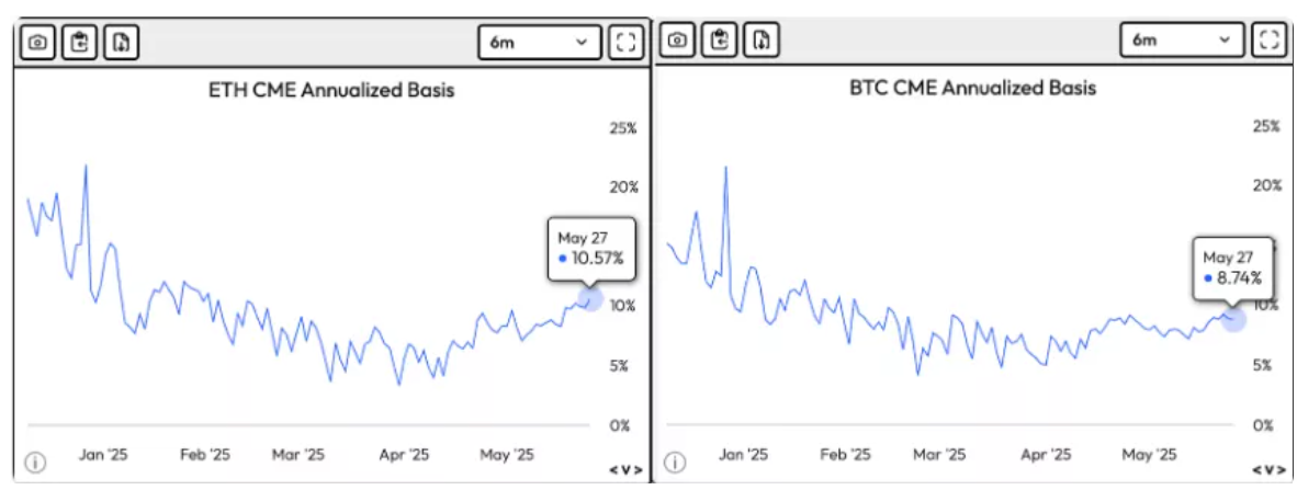 Magdalena Posted June 3, 2025 Posted June 3, 2025 მოსაზრება: მსხვილი კაპიტალი Ethereum-ზე გადაერთო CoinDesk-ის თანამმართველ რედაქტორ ომკარ გოდბოლის თქმით ფიუჩერსებისა და ოფციონების ბაზრები მსხვილი ინვესტორების მხრიდან Eteherum-ის მიმართ Bitcoin-თან შედარებით მზარდ ინტერესს ავლენს, რაც კრიპტო ბაზარზე ფოკუსის შესაძლო ცვლილებაზე მიუთითებს. Deribit-ის მონაცემები აჩვენებს, რომ ტრეიდერები სულ უფრო ხშირად ყიდულობენ Ethereum-ით მოვაჭრე ოფციონებს. ანალიტიკოსმა აღნიშნა, რომ Ethereum-ისთვის რისკის ცვლილების მაჩვენებელი პირველი კრიპტოვალუტის ოფციონებთან შედარებით უფრო მაღალია. ჩიკაგოს სასაქონლო ბირჟაზე Ethereum-ის ფიუჩერსების მიმართ ღია ინტერესი (OI) ასევე ზრდის ტემპს აჭარბებს. აპრილის დასაწყისიდან ETH კონტრაქტებში OI 186%-ით გაიზარდა და 3.15 მლრდ აშშ დოლარს მიაღწია. გოდბოლმა აღნიშნა, რომ ზრდა ბოლო ორი კვირის განმავლობაში დაჩქარდა. შედარებისთვის, Bitcoin-ის ფიუჩერსებში OI 70%-ით გაიზარდა და 17 მლრდ აშშ დოლარს მიაღწია, თუმცა ბოლო კვირაში დასტაბლურდა. Ethereum-ის ფიუჩერსული პრემიები ამ ტენდენციას ადასტურებს. Velo-ს მონაცემებით, ETH-ის ყოველთვიური ფიუჩერსები იყიდება წლიური პრემიით 10.57%, რაც იანვრის შემდეგ ყველაზე მაღალი მაჩვენებელია. Bitcoin-დერივატივები 8.74%-ს აფიქსირებს. წყარო: Velo, CoinDesk. მსგავსი სიტუაცია შეინიშნება ოფშორულ ბირჟებზე უვადო ფიუჩერსების დაფინანსების განაკვეთებთან დაკავშირებით. Ethereum-ის შემთხვევაში ისინი დაახლოებით 8%-ის, ხოლო ციფრული ოქროს შემთხვევაში - რჩება 5%-ზე ნაკლები. https://tinyurl.com/4ph5m9db Quote