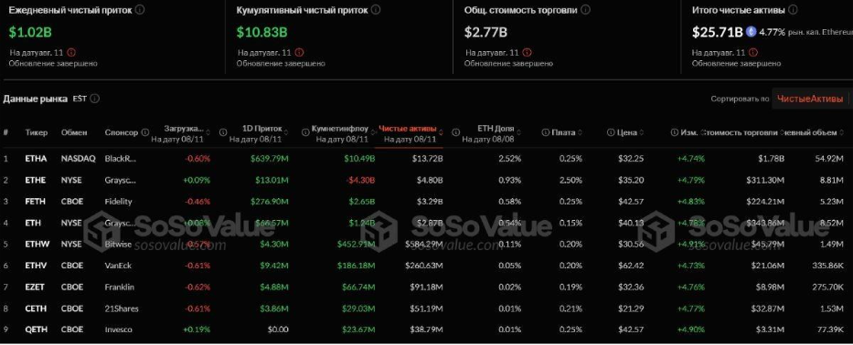 Magdalena Posted August 16, 2025 Posted August 16, 2025 Ethereum ETF-ებში კაპიტალის შემოდინებამ პირველად გადააჭარბა 1 მლრდ აშშ დოლარს 11 აგვისტოს ამერიკული კომპანიების მიერ გამოშვებულ Ethereum ETF-ებში კაპიტალის შემოდინებამ ისტორიაში პირველად გადააჭარბა 1 მლრდ აშშ დოლარს. პლატფორმა SoSoValue-ს თანახმად ETH-ზე დაფუძნებული ცხრა დერივატივის კაპიტალიზაცია გაიზარდა 1.02 მლრდ აშშ დოლარით და მიაღწია 25.71 მილიარდს. საერთო ჯამში, პირველი Ethereum ETF-ის ლისტინგის შემდეგ, რომელიც დამტკიცდა 2024 წლის 23 ივლისს, ფონდებში ინვესტირებულია 10.83 მლრდ აშშ დოლარი. Ethereum-ETF-ების სტატისტიკა. წყარო: SoSoValue Bitcoin ETF-ები ამჯერად გაცილებით ნაკლებად პოპულარული აღმოჩნდა. 11 აგვისტოს მათ მხოლოდ 178.15 მლნ აშშ დოლარის მოზიდვა მოახერხეს. ეს ფაქტი ნათლად მიუთითებს Altcoin-ების სეზონის გაგრძელებაზე, რომლის დროსაც ტრეიდერების ყურადღება BTC-დან ETH-სა და სხვა ციფრულ აქტივებზე გადადის. ამ მიზეზით BNB-ის (BNB), Dogecoin-ისა (DOGE) და Chainlink-ის (LINK) ბაზრებზე ძლიერი ზრდის ტენდენციის დაფიქსირება დაიწყო. ამავდროულად, უნდა აღინიშნოს, რომ ETH ETF-ები კაპიტალიზაციის თვალსაზრისით 154.42 მლრდ აშშ დოლარის კაპიტალიზაციის მქონე BTC ETF-ებს კონკურენციასაც კი ვერ უწევენ. ბოლო თვის განმავლობაში Bitcoin-ის ფასი 1.32%-ით, ხოლო Ethereum-ის - 46.07%-ით გაიზარდა. საშუალოვადიან პერსპექტივაში ETH, სავარაუდოდ, ზრდის ტემპით BTC-ს გაუსწრებს ინსტიტუციებიდან კაპიტალის შემოდინების უფრო შთამბეჭდავი მოცულობის გამო. ის ფაქტი, რომ Bitcoin-ის ფასი 120 ათას აშშ დოლარზე დაბლა დაეცა, მიანიშნებს მონეტის ღირებულების 115 ათას აშშ დოლარამდე ვარდნაზე. ამასობაში, ETH-ის კურსი, რომელიც 4200 აშშ დოლარიან ნიშნულს სცილდება, შესაძლოა 4500 აშშ დოლარამდე გაიზარდოს. https://tinyurl.com/bd3dx595 Quote