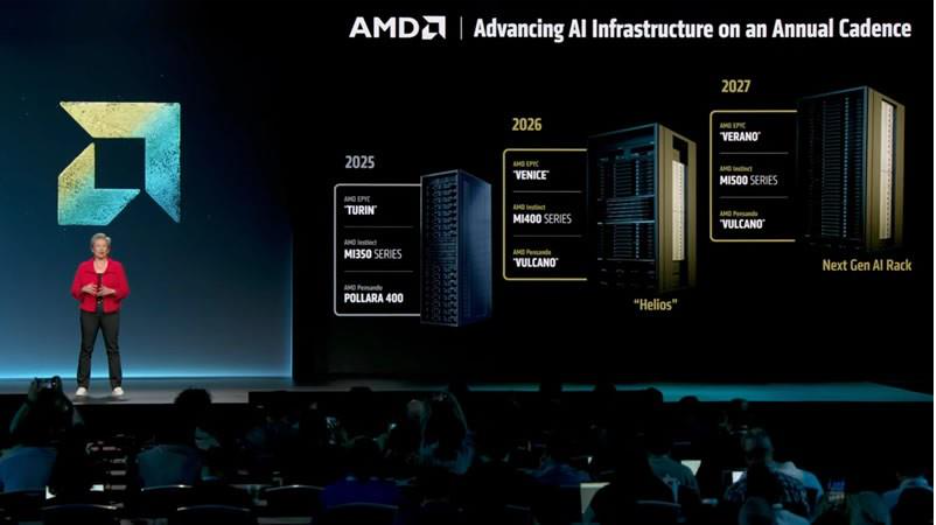 AMD-მ წარადგინა ხელოვნური ინტელექტის ამაჩქარებლებ Instinct MI350 და MI355X და დააანონსა MI400 432 გბ HBM4 მეხსიერებით.